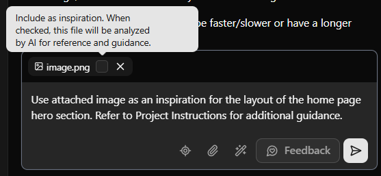 - When words are not enough to explain what you need, use screenshots for visual guidance. Upload an image that represents the layout or look you are aiming for so the builder can use it as inspiration.